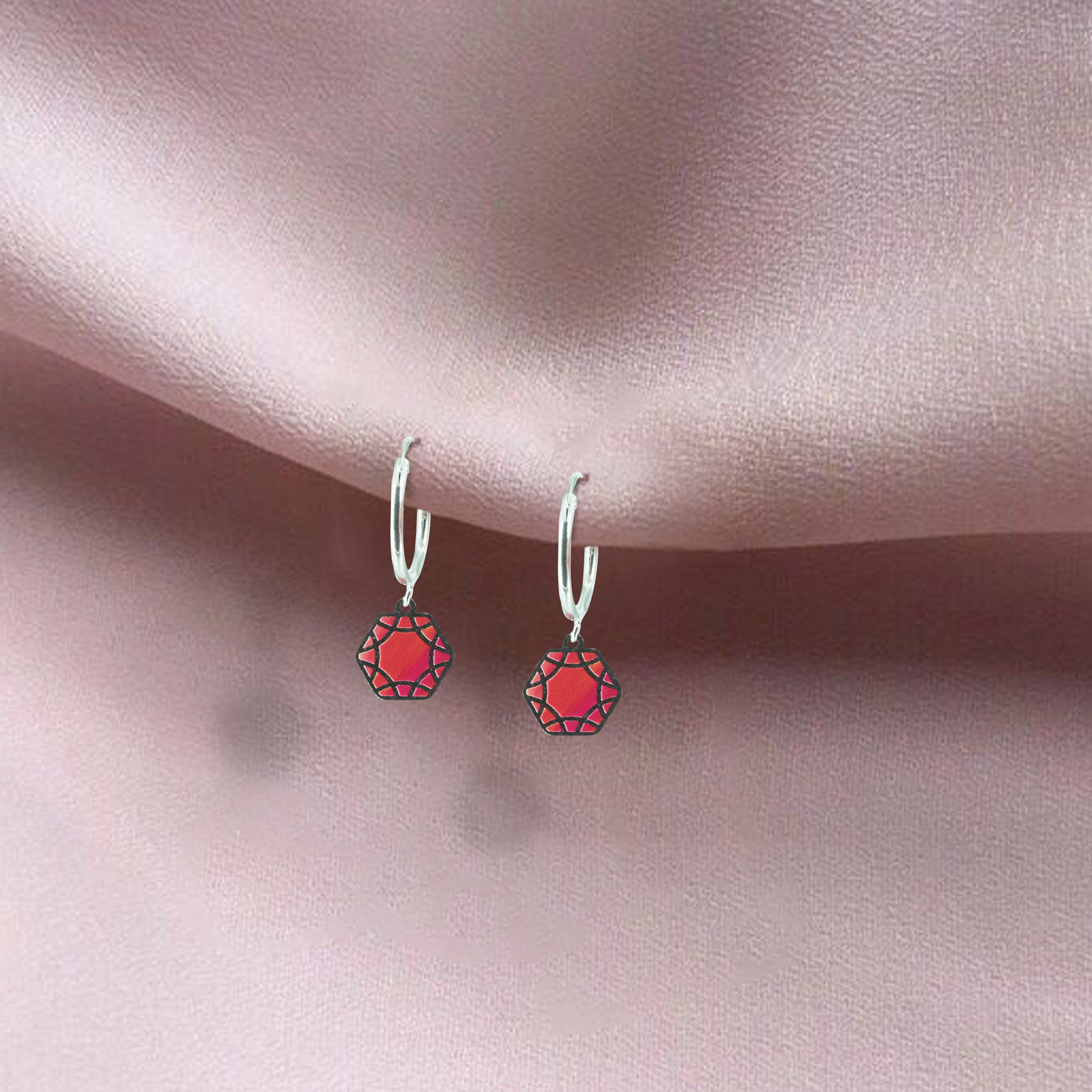 Elegant Bold Ruby Hexagon Laser Bali Earrings crafted in pure 925 sterling silver, lightweight and perfect for daily wear or gifting.