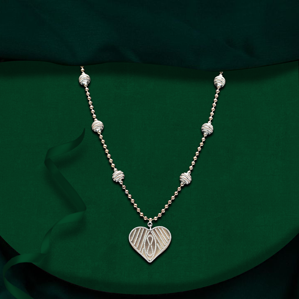 This 925 sterling silver mala features an ethereal heart charm, designed for ultra-light wear with a Turkish twist.