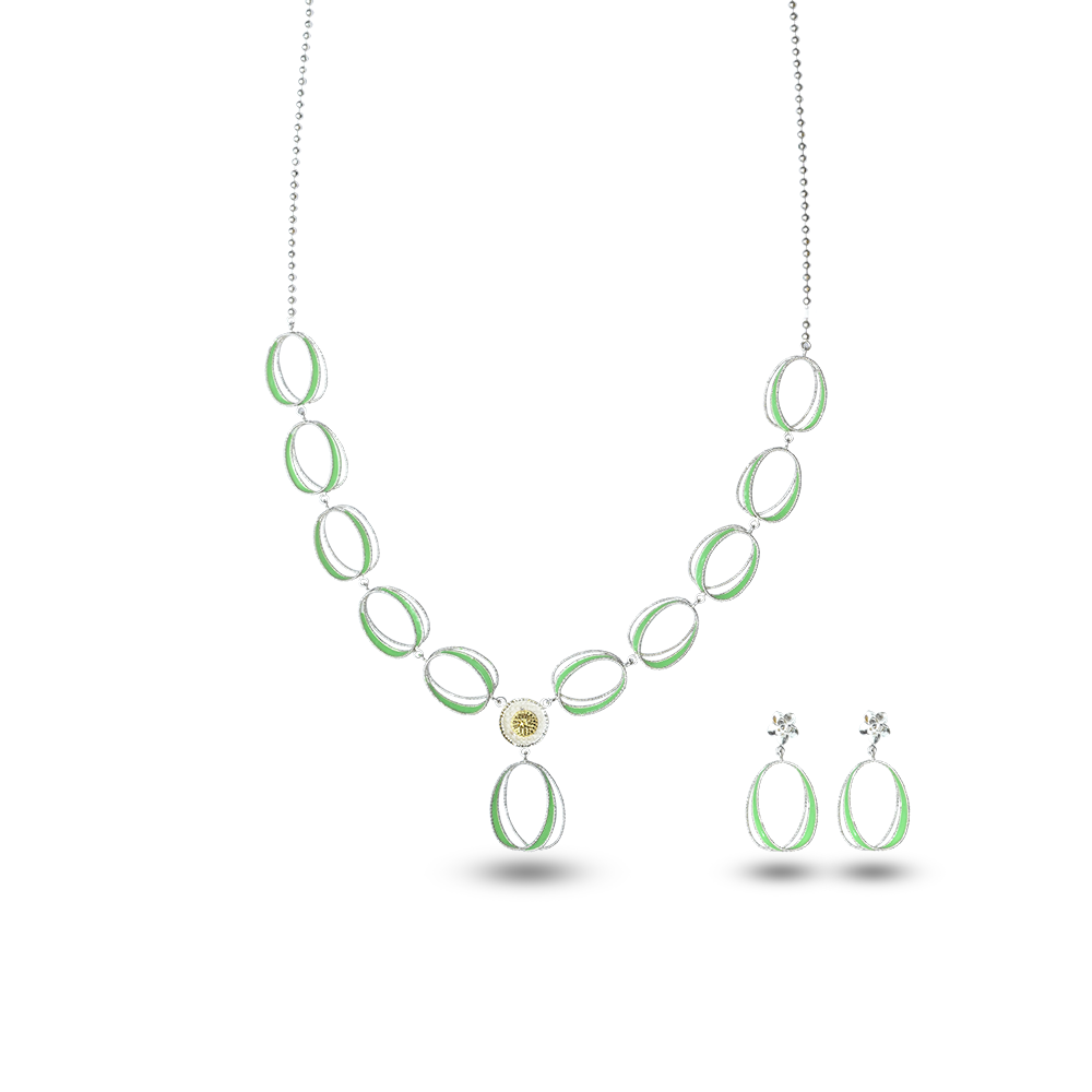 A 925 sterling silver ultra-light jewelry set with teal and aqua oval accents, offering a Turkish-inspired elegant design.