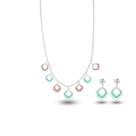 This 925 sterling silver ultra-light set features a necklace and earrings with multi-color oval designs, inspired by Turkish craftsmanship.