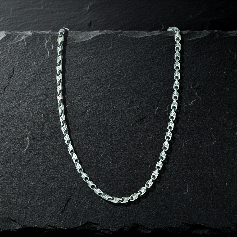 Nautical alternating anchor hollow chain in ultra-light sterling silver.