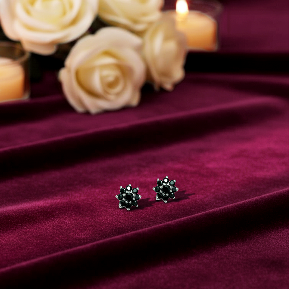 925 Sterling Silver Ultra Light Weighted Black Dahlia Studs