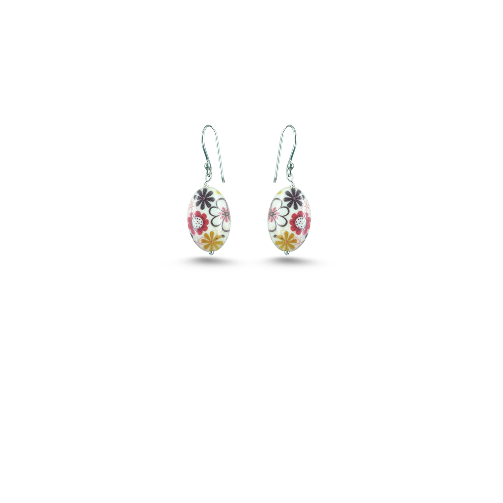 Blooming flower-printed hanging regular earrings in ultra-light 925 silver.