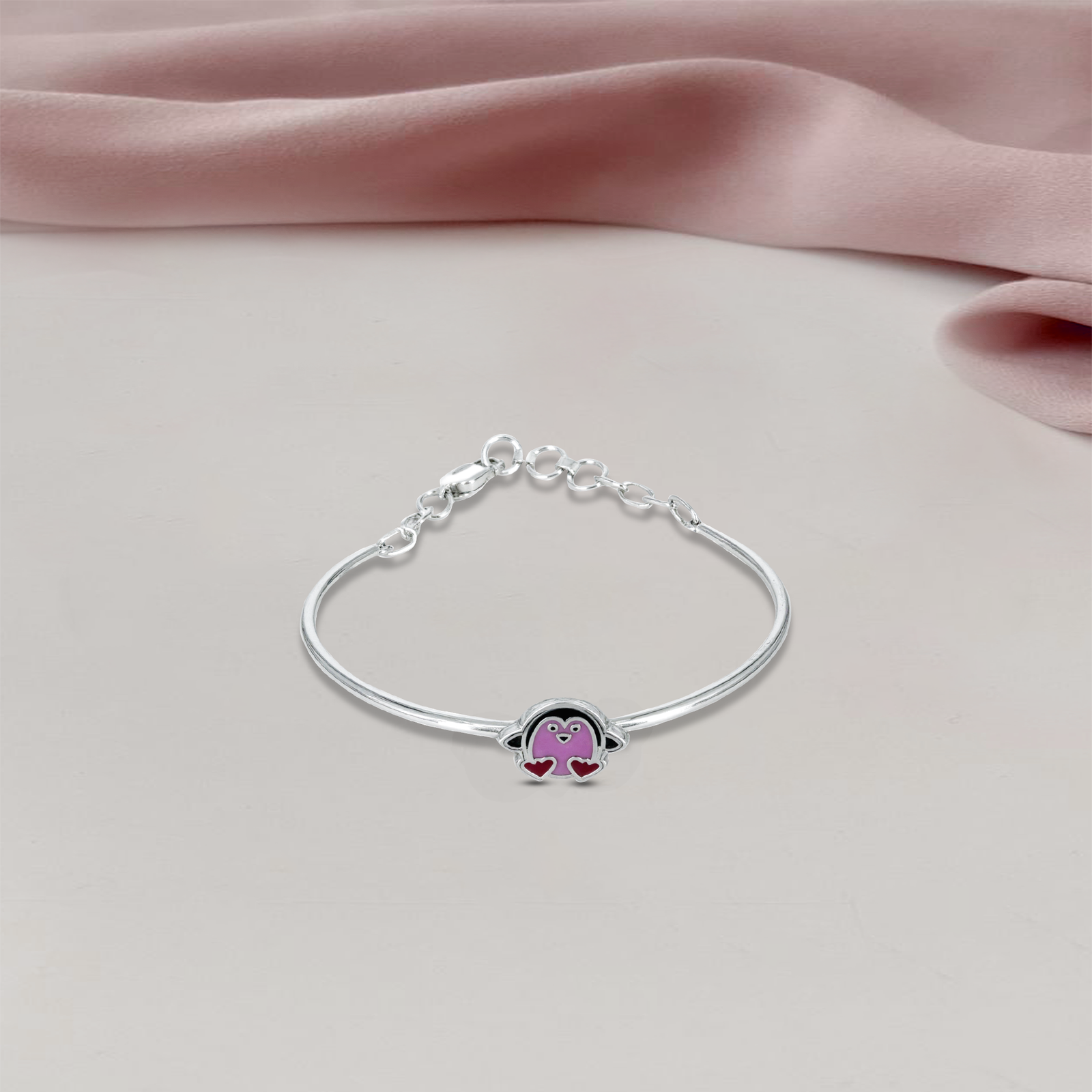 Elegant Ultra Light Weighted Pink Penguine Kids Bracelet crafted in pure 925 sterling silver, lightweight and perfect for daily wear or gifting.