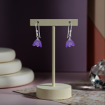 Vibrant purple flower hanging regular earrings in ultra-light silver design.