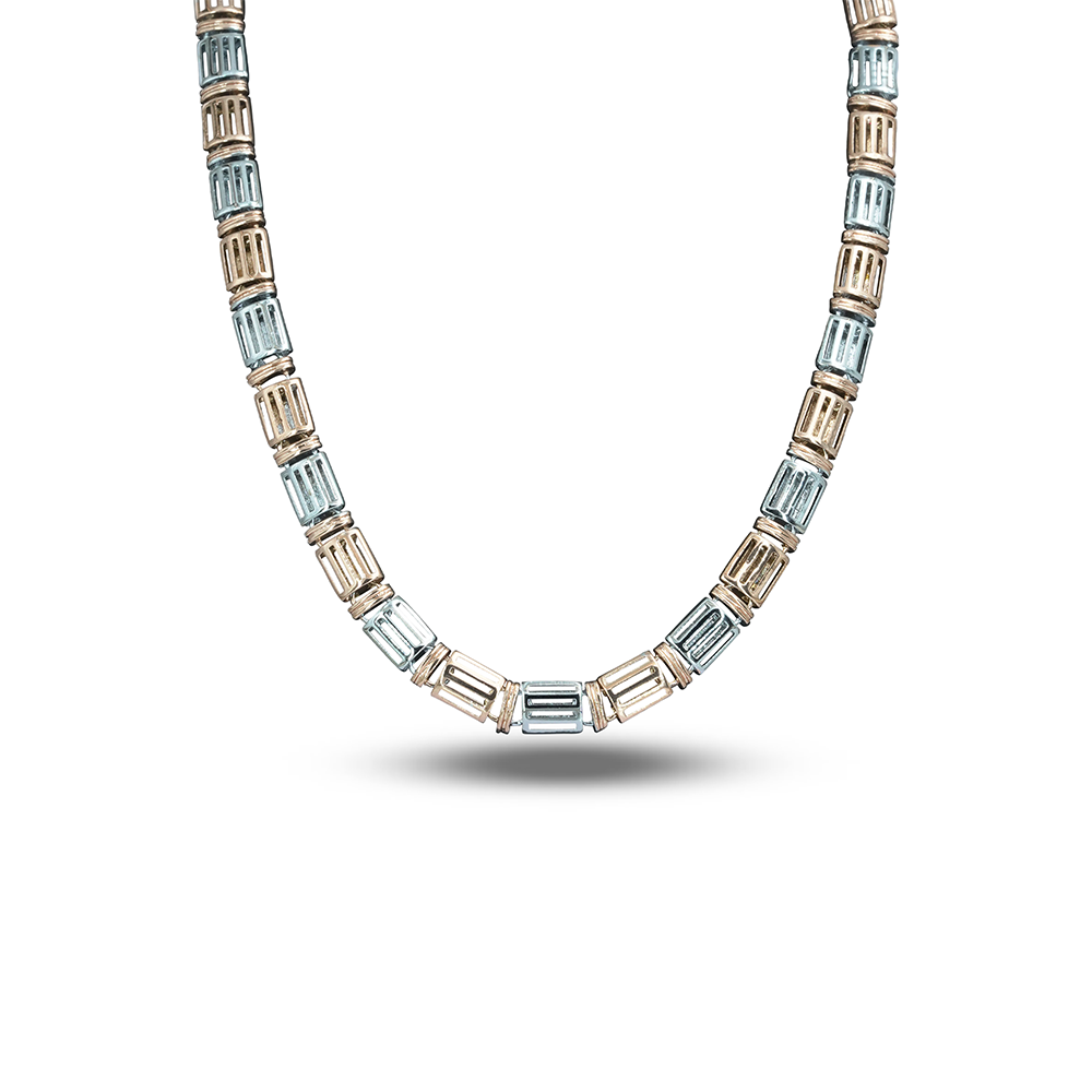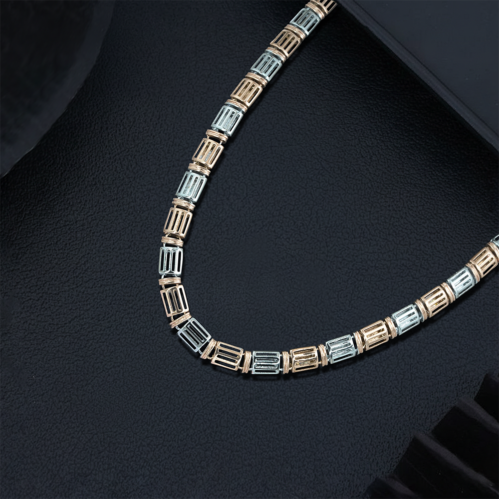 Modern two-tone rectangular Quban chain in ultra-light sterling silver.