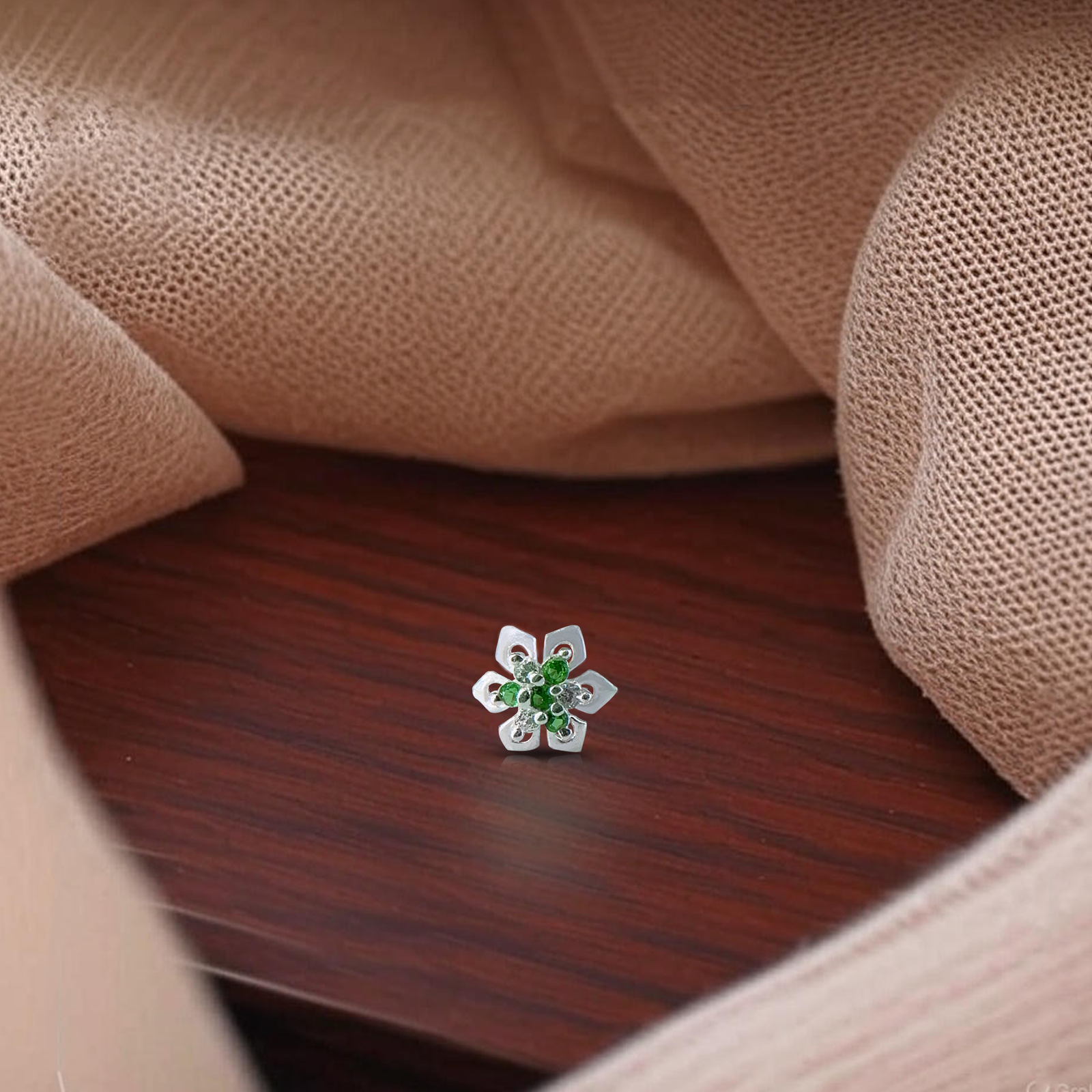 925Sterling Silver Emerald Petals Nose Pin